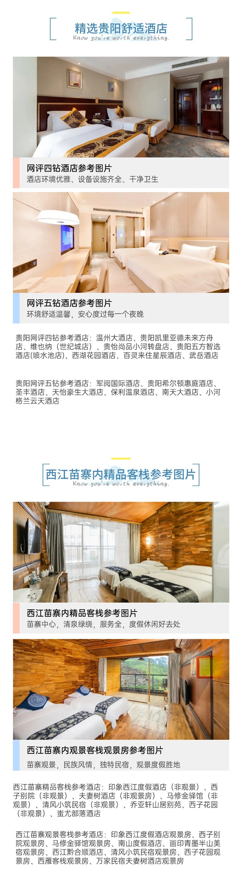 成人价格: 1. 商务酒店+普通客栈:1330元/人 2. 网评四钻酒店+精品客栈:1380元/人 3. 网评四钻酒店+观景客栈:1440元/人 4. 网评五钻酒店+观景客栈:1590元/人 5. 亚朵酒店+四钻客栈观景房:1570元/人 儿童价格:830元/人 费用不含:景区小交通等自费项目:140元/人(必消项目) 免票人群优惠:在对应价格基础上减免230元/人 价格有效期:4月1日-4月28日,详询客服! 贵阳美途说旅行社客服热线:18285125548,18285123833(微信同号)